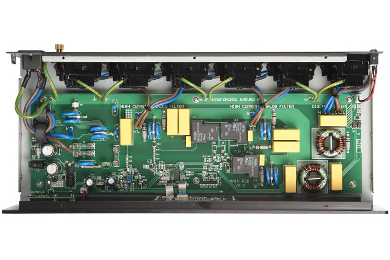 Dankzij de compacte behuizing (met een hoogte van slechts 80 mm en een diepte van slechts 185 mm) past de YG-2 in bijna elk systeem en biedt hij 6 stopcontacten, terwijl hij dezelfde stroomcapaciteit levert als zijn grote broer, de YG-1.