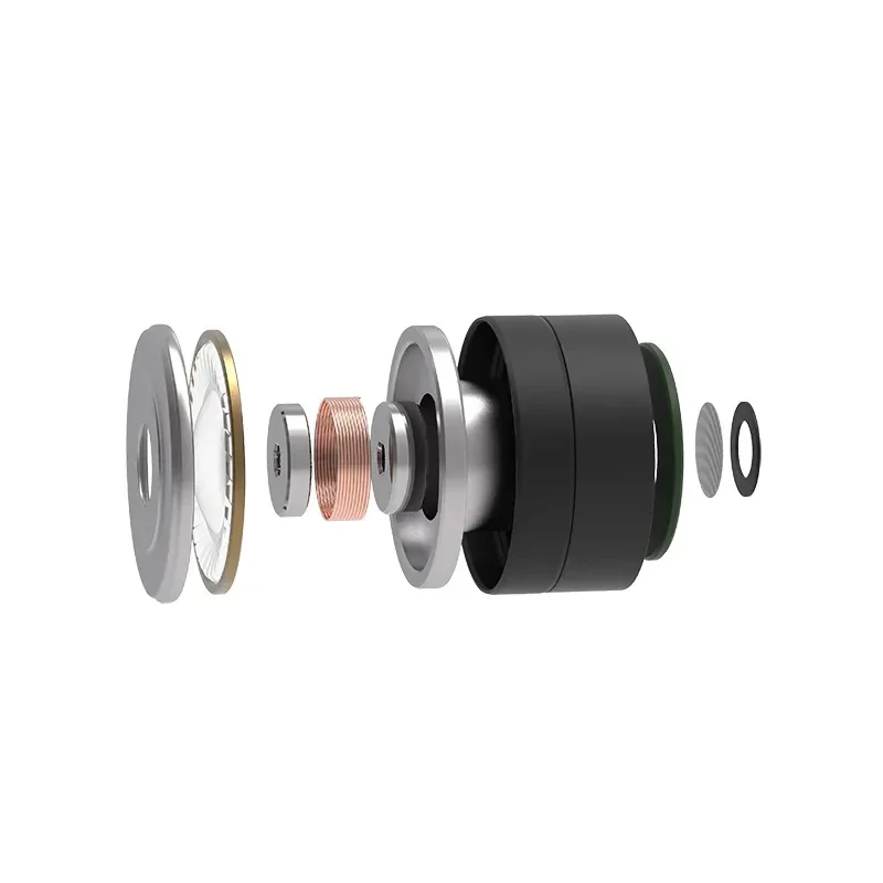 Aan de kern van de Tanchjim Tanya ligt een 7 mm micro dynamische driver met de derde generatie Dual Magnetic Technology (DMT), uitgerust met een PEEK-diafragma voor een robuuste respons en lage vervorming. Dit single-DD ontwerp, geoptimaliseerd voor vocal-pronounced weergave, levert een frequentierespons van 20 Hz tot 42 kHz, met een gecontroleerde bas die diep en pillowy is zonder bloom, een transparante midrange die zowel mannelijke als vrouwelijke vocals met levendige emotie en textuur weergeeft (zoals in Michael Bolton's tracks), en een smooth, airy treble die detailrijk maar niet scherp is – met een lichte upper-mid lift voor presence zonder shoutiness. De totale harmonische vervorming (THD) blijft onder de 0.3% bij 1 kHz, terwijl de impedantie van 16 Ω ±10% en gevoeligheid van 112 dB/Vrms de Tanya eenvoudig aan te sturen maken door smartphones of dongles; de DSP-versie voegt parametric EQ toe voor bass-aanpassingen, al profiteert de set van een krachtige bron voor meer openheid en schaalbaarheid.